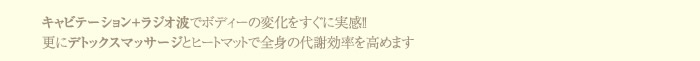 更に「ラジオ波」で、深部に摩擦熱を発生させ、血行やリンパの流れが促進する事により体内の老廃物を流しやすくします。