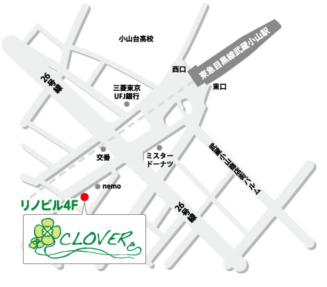 CLOVERは、東急目黒線「武蔵小山」駅から徒歩2分の場所にあります。